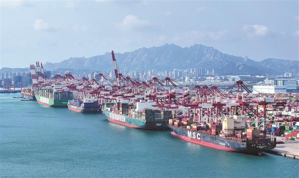 近年来,山东港口青岛港依托毗邻日韩的区位优势及海上贸易往来的枢纽优势,密织覆盖日韩主要港口的海运航线网络。目前佳禾配资,青岛港除承接大量日韩国际中转业务外,每周还有约40班“日韩快线”直达班船,形成了高效、密集、便捷的中日韩海上物流大通道。图为繁忙的青岛港前湾港区。 新华社记者 李紫恒 摄